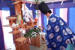 神主の祝詞も、青空に響き、