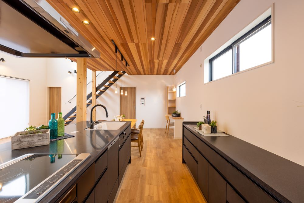キッチンや鉄骨階段、アイアン手すりは黒!