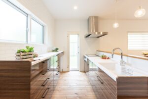 家事動線は一列に配置し、収納もプラス