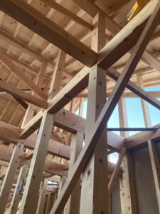 上棟後は大工一人でコツコツと作業を進めていきます。
